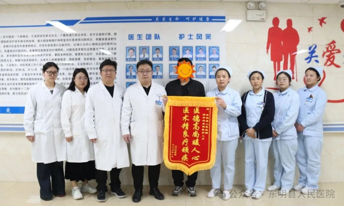 1月14日,患者家属将三面锦旗亲手送至东明县人民医院院长关永杰及重症医学科、老年病科、康复医学科医护团队手中。锦旗上“重症室里显担当,生死线上施援手”“医德高尚暖人心,医术精良疗顽疾”“医术精湛助归常,康复有方除顽疾”的烫金大字,承载着患者及家属的深切感激。